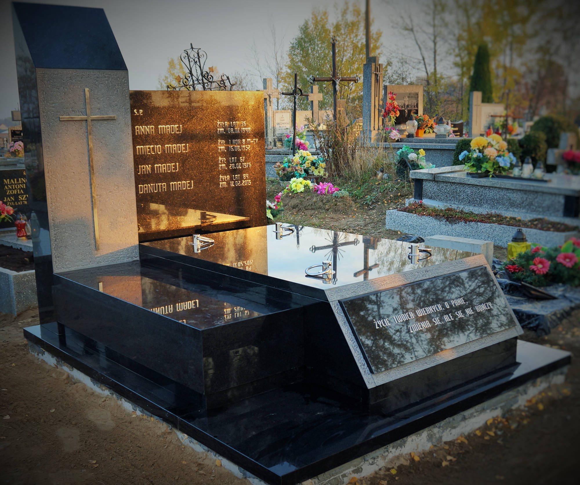 Przedstawione w galerii wzory nagrobków, kolory i rodzaje kamienia stanowią tylko przykład.Oferujemy szeroki wybór wzorów kamienia oraz typów, stylów, rodzajów nagrobków jak i wykończeń.Jesteśmy w stanie wykonać nawet najbardziej nietypowy projekt nagrobka.